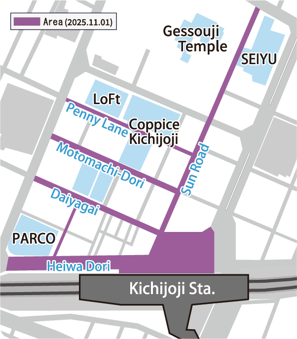 武蔵野市開発公社および、参画商店会(吉祥寺サンロード商店街振興組合・ダイヤ街商店協同組合・吉祥寺平和通り商店会協同組合・吉祥寺元町通り商店街振興組合・ペニーレーン商店会・吉祥寺公園通り商店会)は、東京オリンピック・パラリンピック開催によって増加する外国人観光客を含む多くの来街者に対して、通信インフラである無料公衆無線LAN(FreeWi-Fi)環境を整備しました。そして、吉祥寺の商業環境を向上させると共に、まちの活性化を図ります。